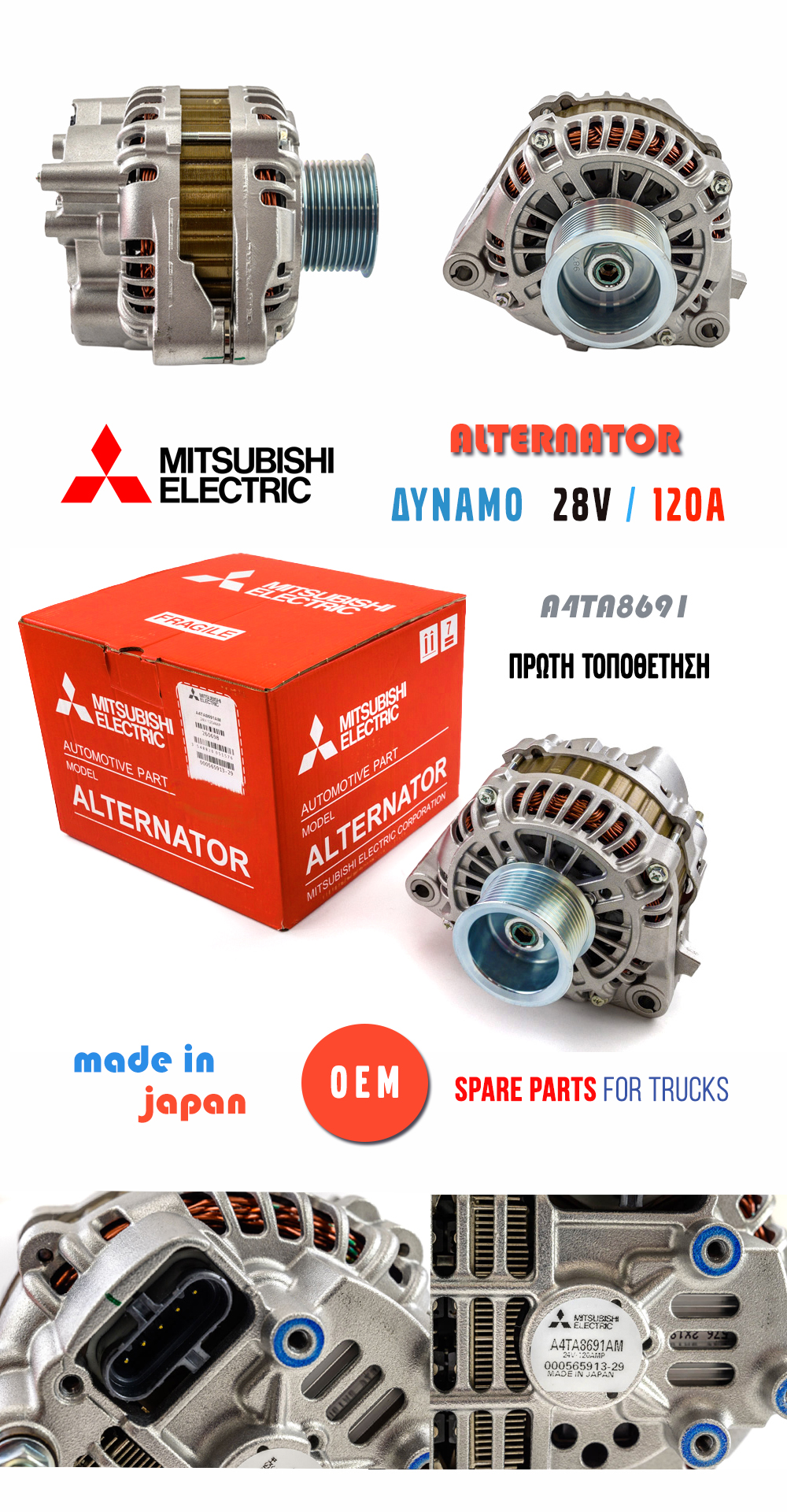 Διαθέσιμες OEM μίζες και δυναμό 1ης τοποθέτησης για τα φορτηγά σας, κατευθείαν από το Ιαπωνικό εργοστάσιο της Mitsubishi Motors.